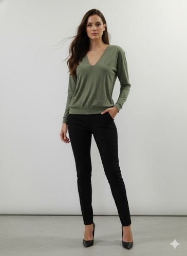 Kadın uzun kollu v yakalı arkadan kurdela detaylı şardonlu kaşkorse bluz