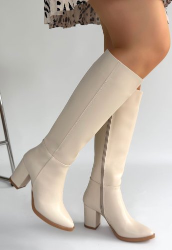 Pitay Bej Cilt Topuklu Çizme