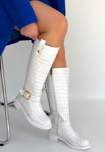 Metta Beyaz Cilt Desenli Çizme
