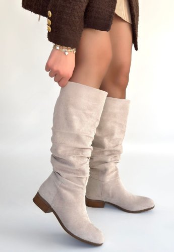 İwon Bej Süet Körüklü Çizme