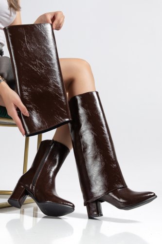 Wila Kahverengi Parlak Topuklu Tak Çıkar Çizme