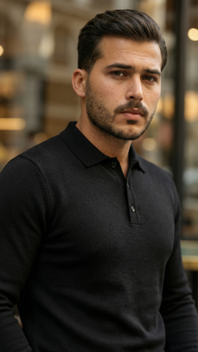Erkek 2li Paket Triko Yakalı Düğmesiz Açık Yaka Fitilli Kısa Kollu Regular Fit Tişört Bej Siyah