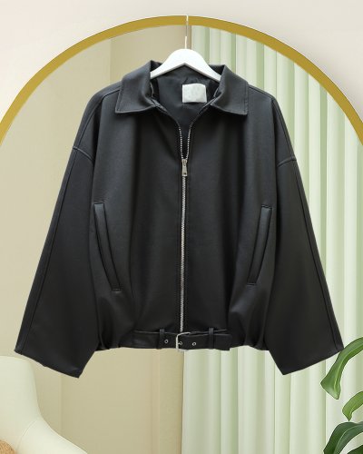 İçi Astarlı Beli Kat Detaylı Kemerli Deri Ceket Siyah