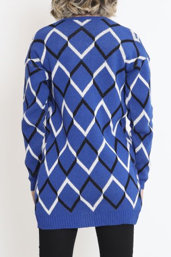 V Desen Pike Örgü Hırka Saks