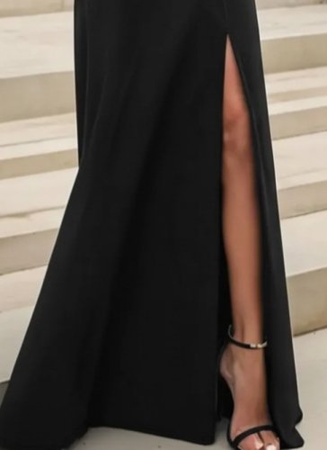 • Kadın uzun kollu madonna yakalı yırtmaç detaylı uzun ithal krep elbise