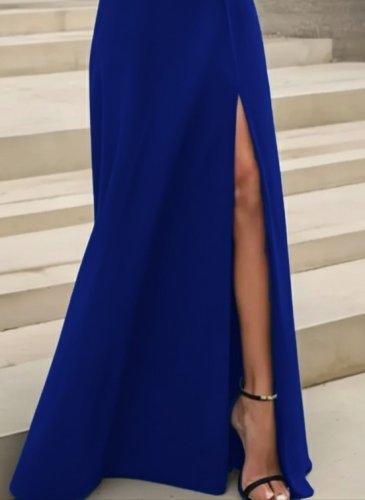 • Kadın uzun kollu madonna yakalı yırtmaç detaylı uzun ithal krep elbise