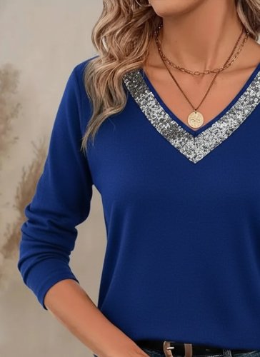 • Kadın uzun kollu v payet yakalı viskon bluz
