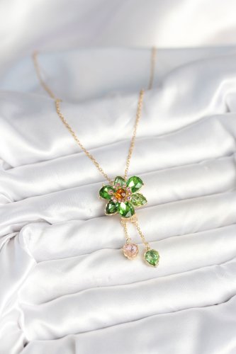 • 316L Çelik Zincir Gold Renk Çiçek Model Sallantılı Kadın Kolye