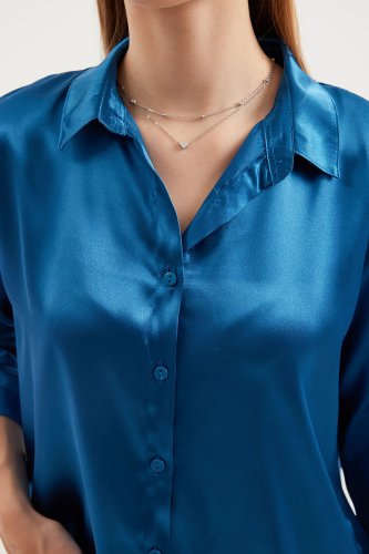 • 3964 Hafif Dökümlü Saten Gömlek Petrol