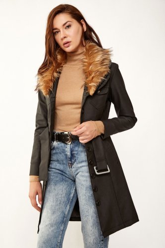 • 1026 Kemerli Suni Kürklü Deri Mont Siyah