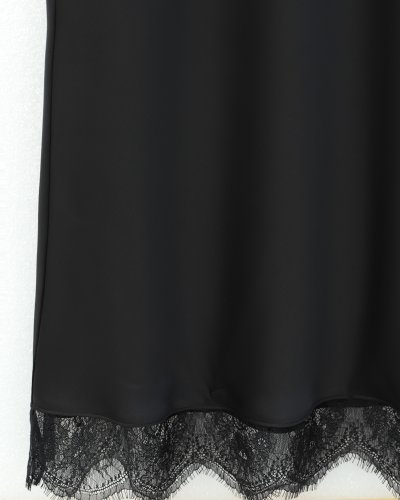 • Ucu Dantel Detaylı Saten Etek Siyah