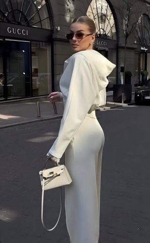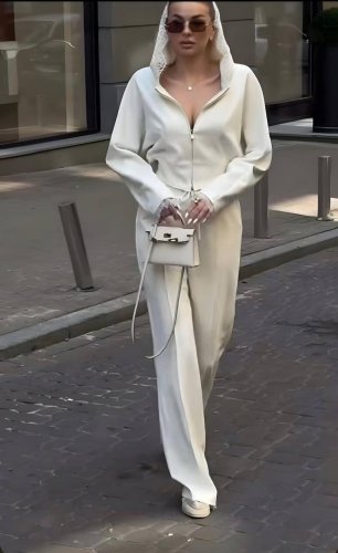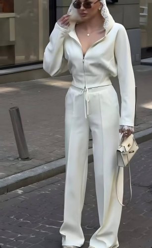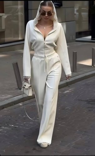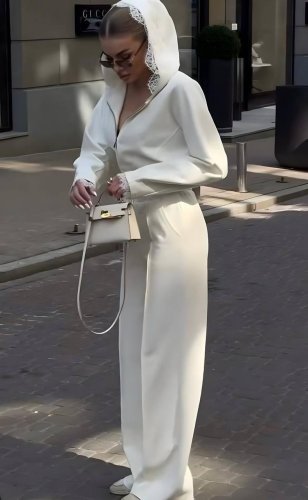 • Kadın dantel işlemeli kapüşon detay hırka ve ispanyol paça pantolon ikili takım