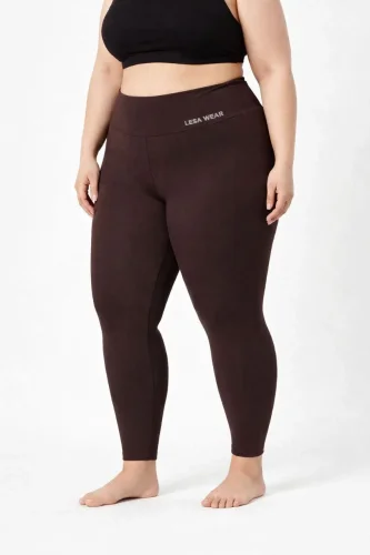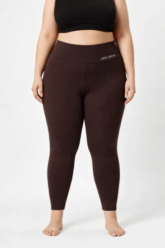 Yüksek Bel Toparlayıcı Likralı dalgıç Spor Tayt Esnek Battal Büyük Beden Kahverengi