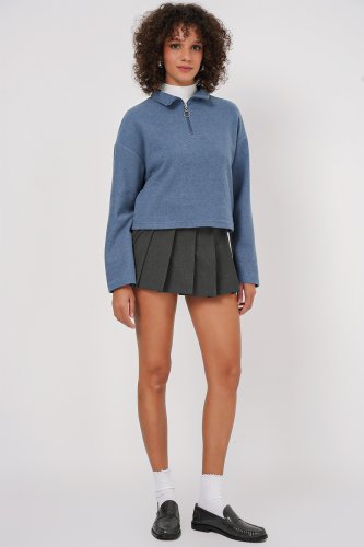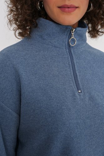 • 55449 Fermuarlı Yaka Örme Sweatshirt İndigo