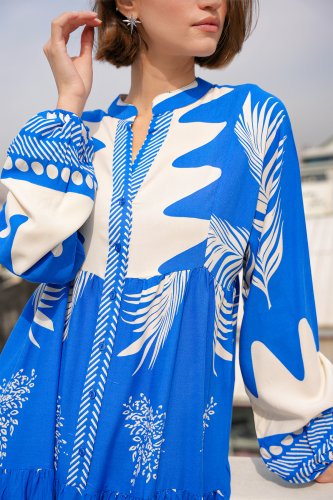 • 2423 Otantik Desenli Tesettür Elbise M Saks