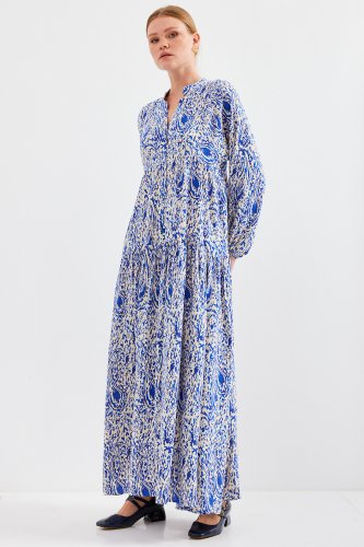 • Desenli Saks Viskon Tesettür Elbise 2423