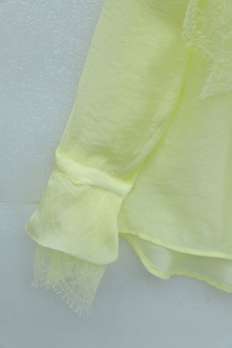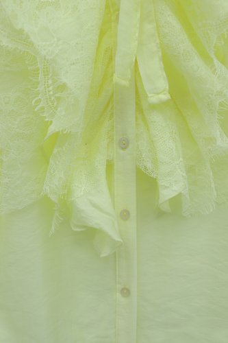 Yakası Bağcıklı Fırfırlı Dantel Detaylı Arkası Uzun Cupra Gömlek Açık Sarı