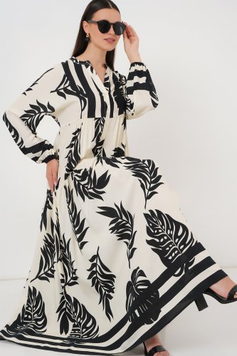 • 2423 Otantik Desenli Tesettür Elbise ABeyaz