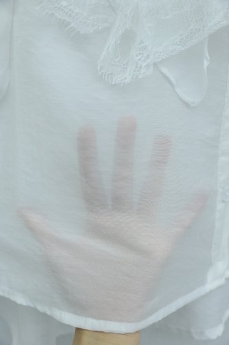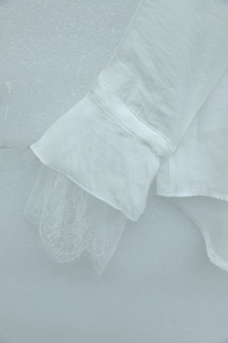 • Yakası Bağcıklı Fırfırlı Dantel Detaylı Arkası Uzun Cupra Gömlek Beyaz